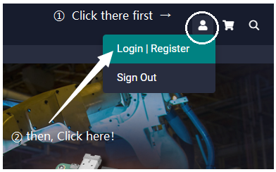 ① 进入页面:首先点击网页右上角 "人物" 按钮,随后点击 "Login | Register" :