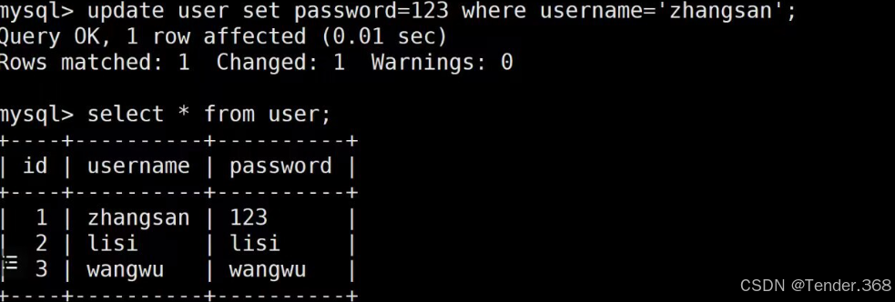 zhangsan的密码修改为123