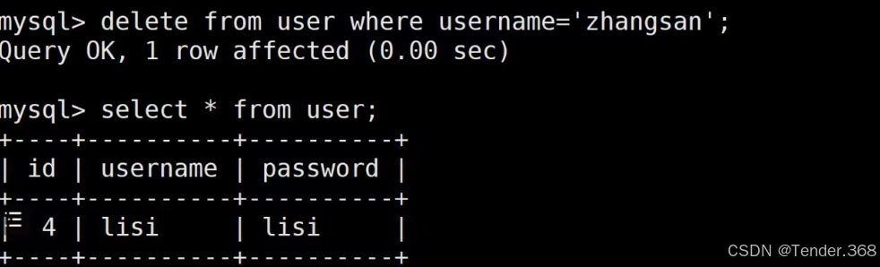 delete from user where 条件