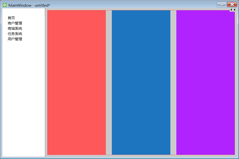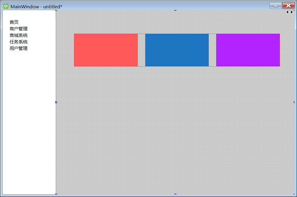 这肯定不是我们想要的,那是不是因为控件太少了,所以这3个frame才把stackedWidget里面全占满了呢?并不是,如果我们再拖拽控件进去,依然是这样排布,因为这3个frame外面最邻近的布局是水平布局,只要在水平布局里面,放再多控件也还是从左到右排布的。