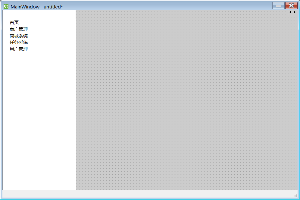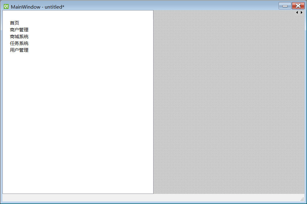 从图中我们看到,菜单栏和工作区在窗口中对半展示了,这个结果并不是我们想要的。所以我们还需要设置一下这2个控件的显示比例,设置方法同上:我们还是单击centralwidget,然后找到Layout属性下的layoutStretch(布局拉伸),默认是“0,0”,现在我们将其设置为“1,3”。