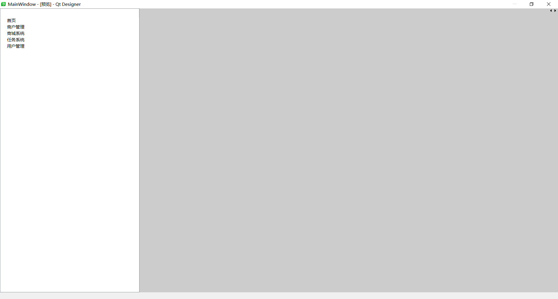 根据上面的基础示例,我们分别拖拽1个treeWidget和1个stackedWidget进来,然后单击窗口空白处,鼠标右键设置水平布局,最后把Layout属性下的数值全部设置为0,结果如下图所示:(为了便于大家观察,我把stackedWidget的背景设置成浅灰色)