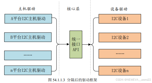 实际的 I2C 驱动设备肯定有很多种,不止 MPU6050 这一个,那么实际的驱动架构如图 54.1.1.3 所示: