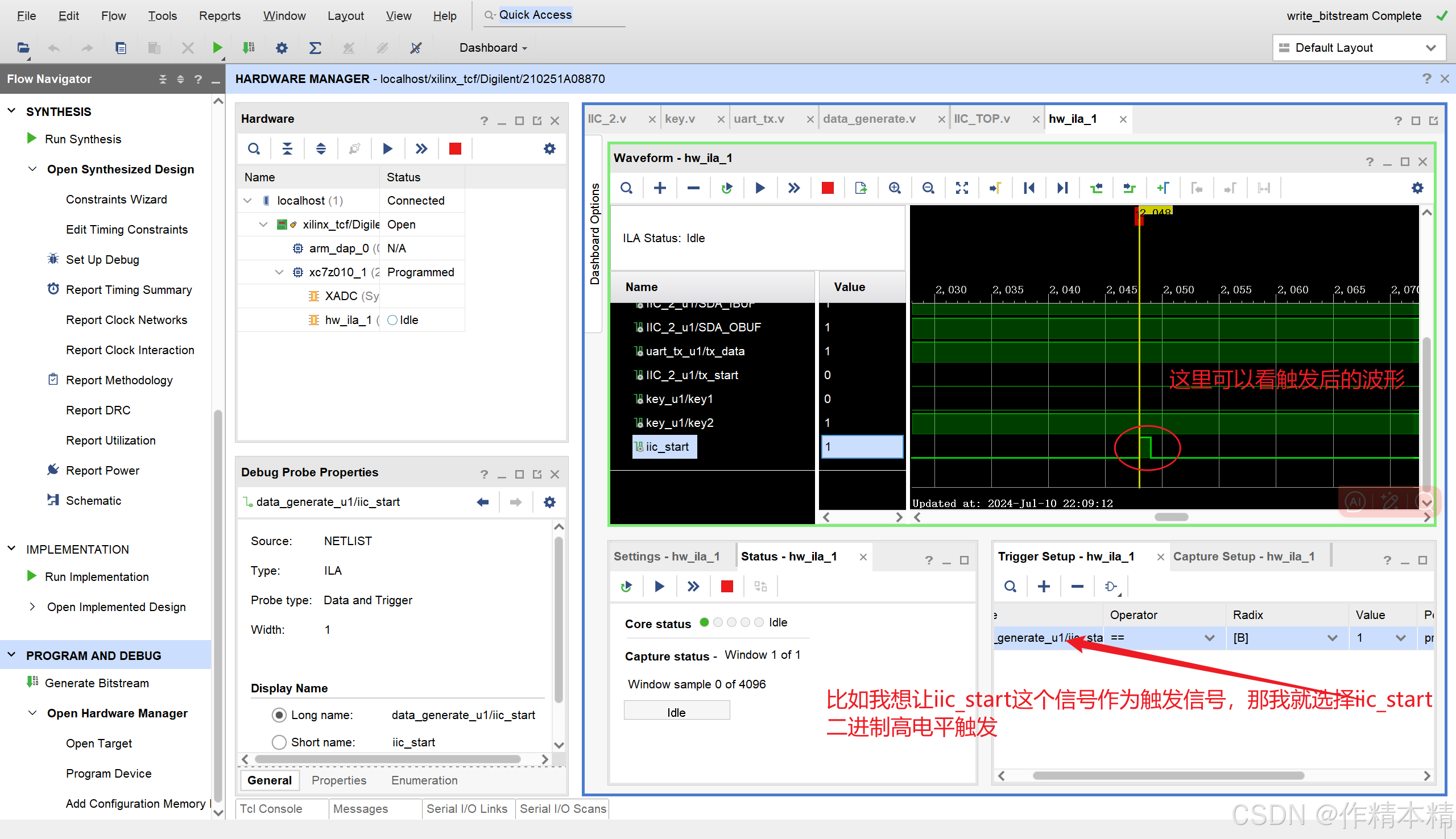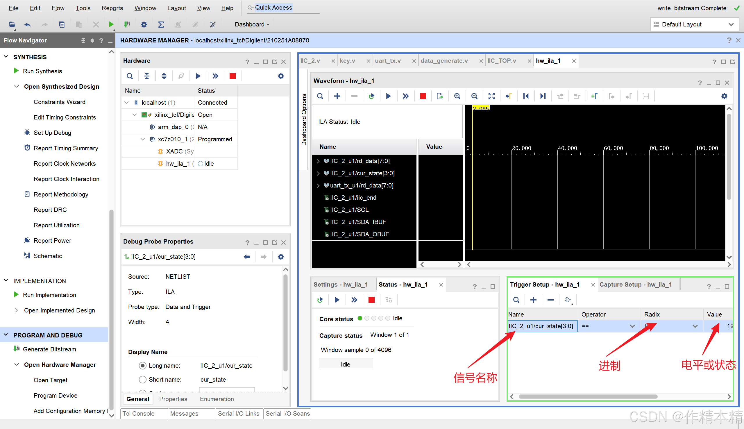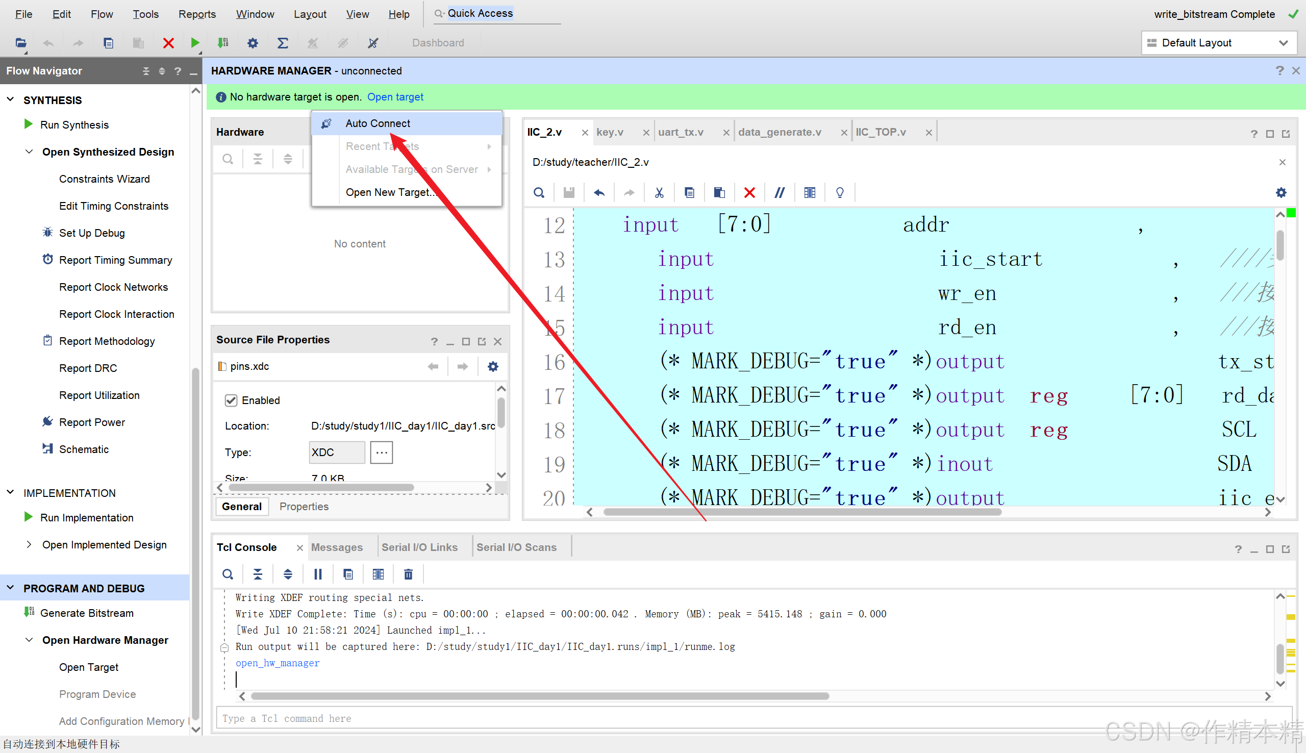 实现FPGA与EEPROM的通信,要求FPGA对EEPROM实现先“写”后“读”,读出的值给uart发送端并显示到电脑上,按下按键1让fpga对EEPROM写入数据;按下按键2让fpga读出对EEPROM写入过的数据。