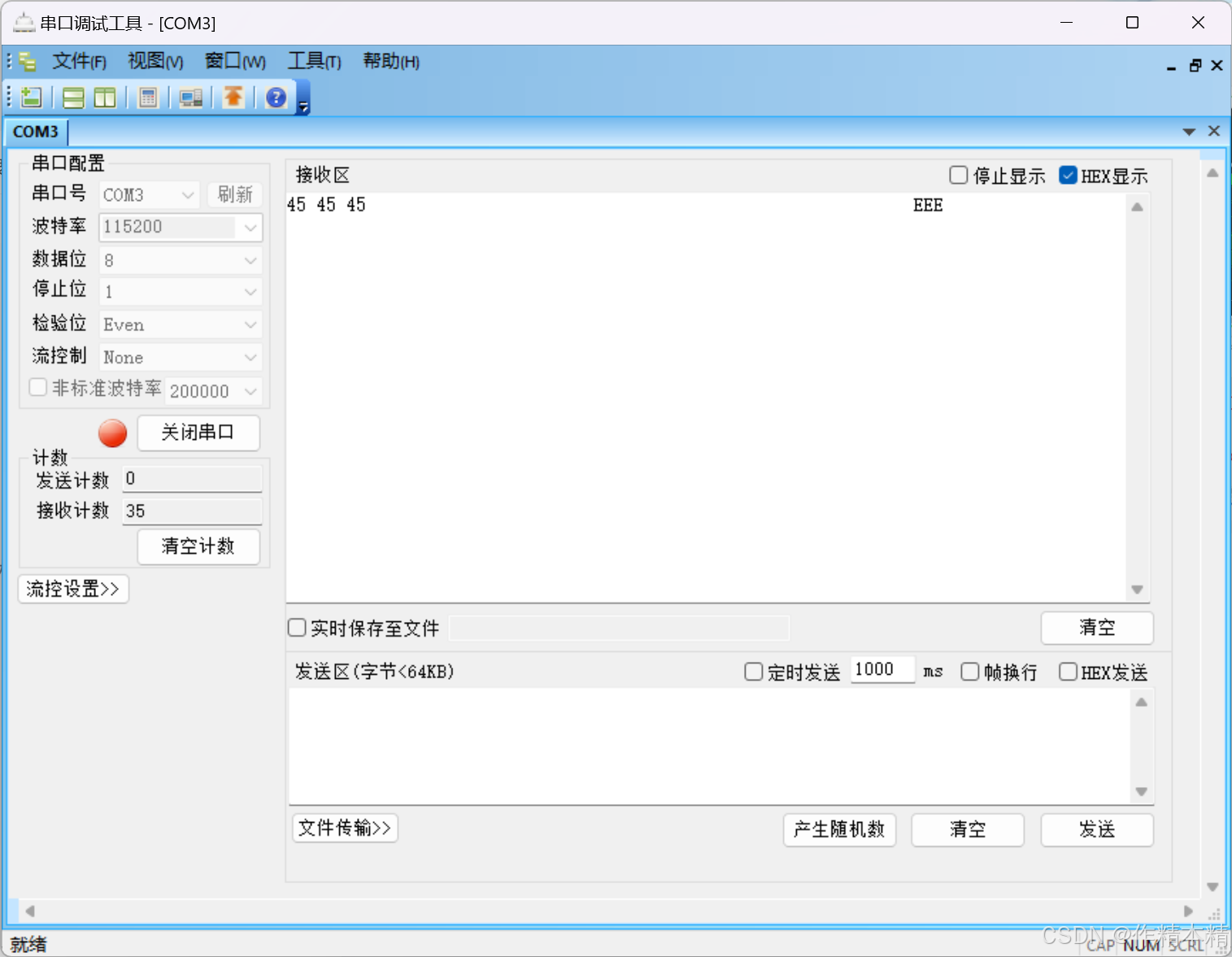 按下控制“写”的按键,再按下“读”的按键后,pc端返回45
