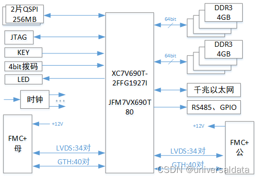 SOM-404板可以无限级联,即满足多片XC7VX690T或JFM7VX690T的需求,可应用于复杂的信号处理、信道分析模拟仿真、算法验证、GPU加速处理等场合。