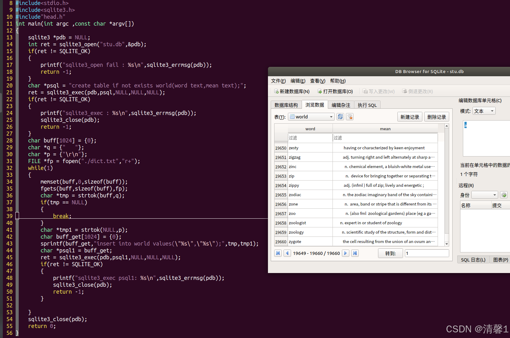 使用linux调用sqlite3函数,将英文字典写入sqlite数据库中,并使用相关函数直接查找打印: