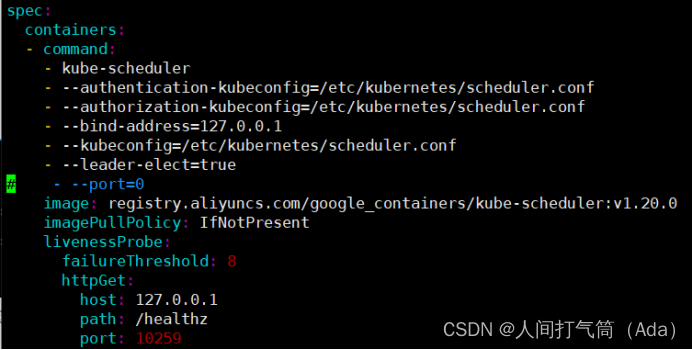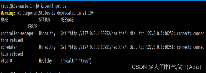 注意:出现以上错误情况,是因为/etc/kubernetes/manifests/下的kube-controller-manager.yaml和kube-scheduler.yaml设置的默认端口为0导致的,解决方式是注释掉对应的port即可