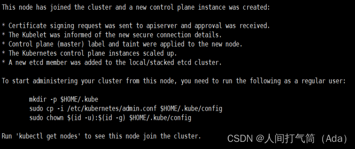 直接在node节点服务器上执行k8s-master1初始化成功后的消息即可: