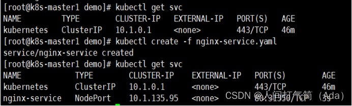 [root@k8s-master1 demo]# kubectl create -f nginx-service.yaml