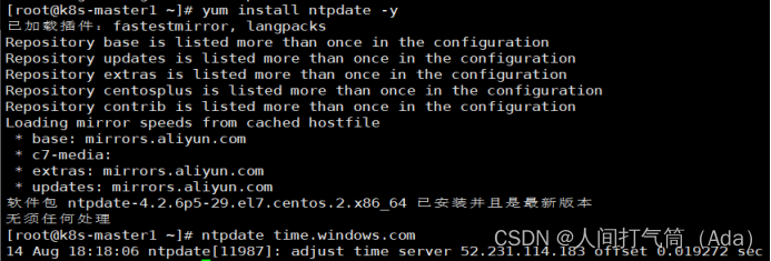[root@k8s-master1 ~]# yum install ntpdate -y