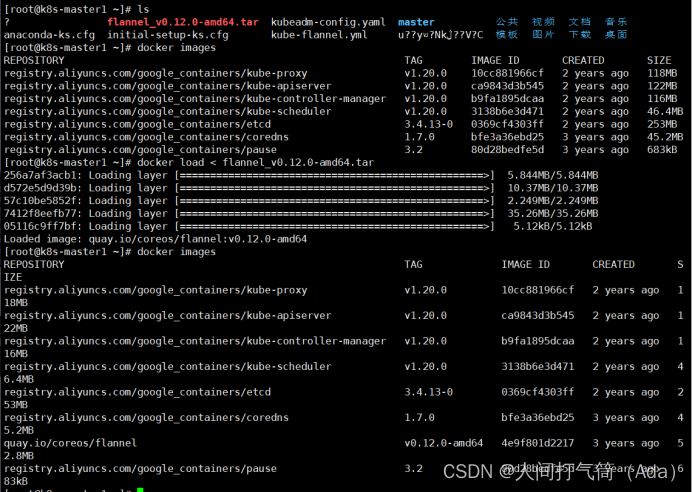[root@k8s-master1 ~]# docker load < flannel_v0.12.0-amd64.tar