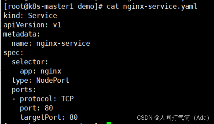 [root@k8s-master1 demo]# vim nginx-service.yaml