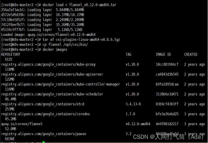 [root@k8s-master2 ~]# docker load < flannel_v0.12.0-amd64.tar
