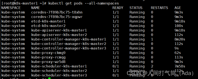 [root@k8s-master1 manifests]# kubectl get pods --all-namespaces