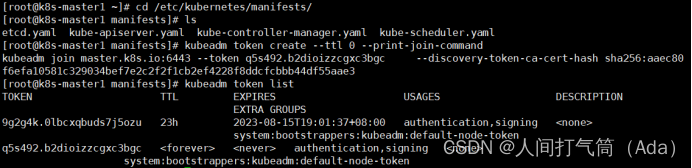 [root@k8s-master1 manifests]# kubeadm token create --ttl 0 --print-join-command