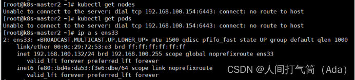 2、如果需要在master节点使用kubectl相关的命令,必须保证至少有2个master节点正常运行才可以使用,不然会有 Unable to connect to the server: net/http: TLS handshake timeout 这样的错误。