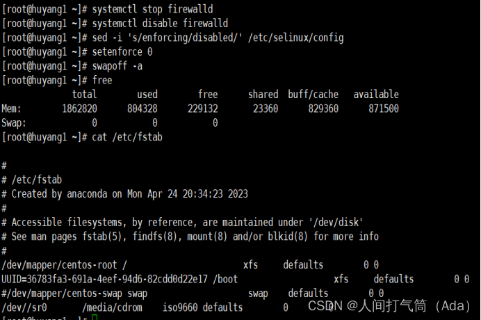 [root@localhost ~]# sed -ri 's/.*swap.*/#&/' /etc/fstab