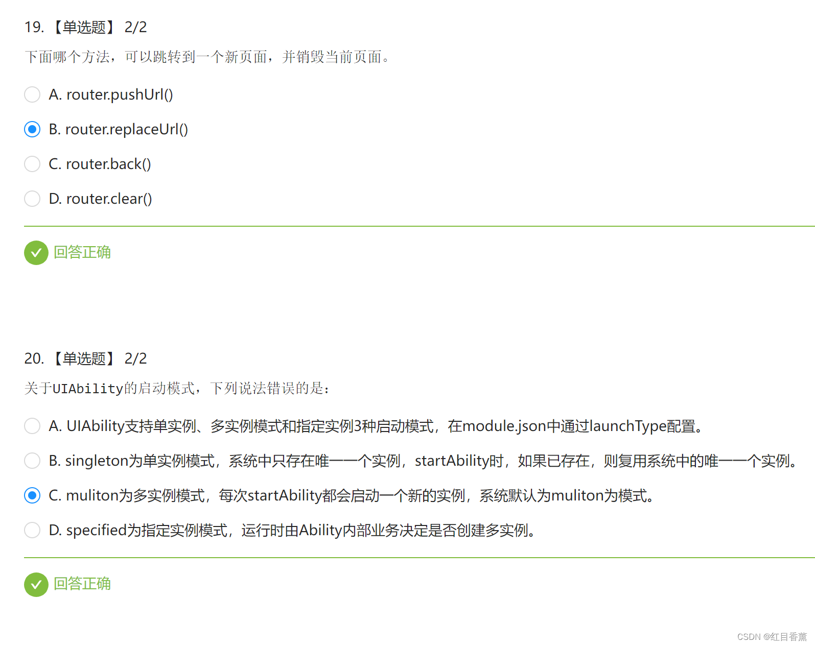 - 关于UIAbility的启动模式,下列说法错误的是:(muliton为多实例模式,每次startAbility都会启动一个新的实例,系统默认为muliton为模式。)