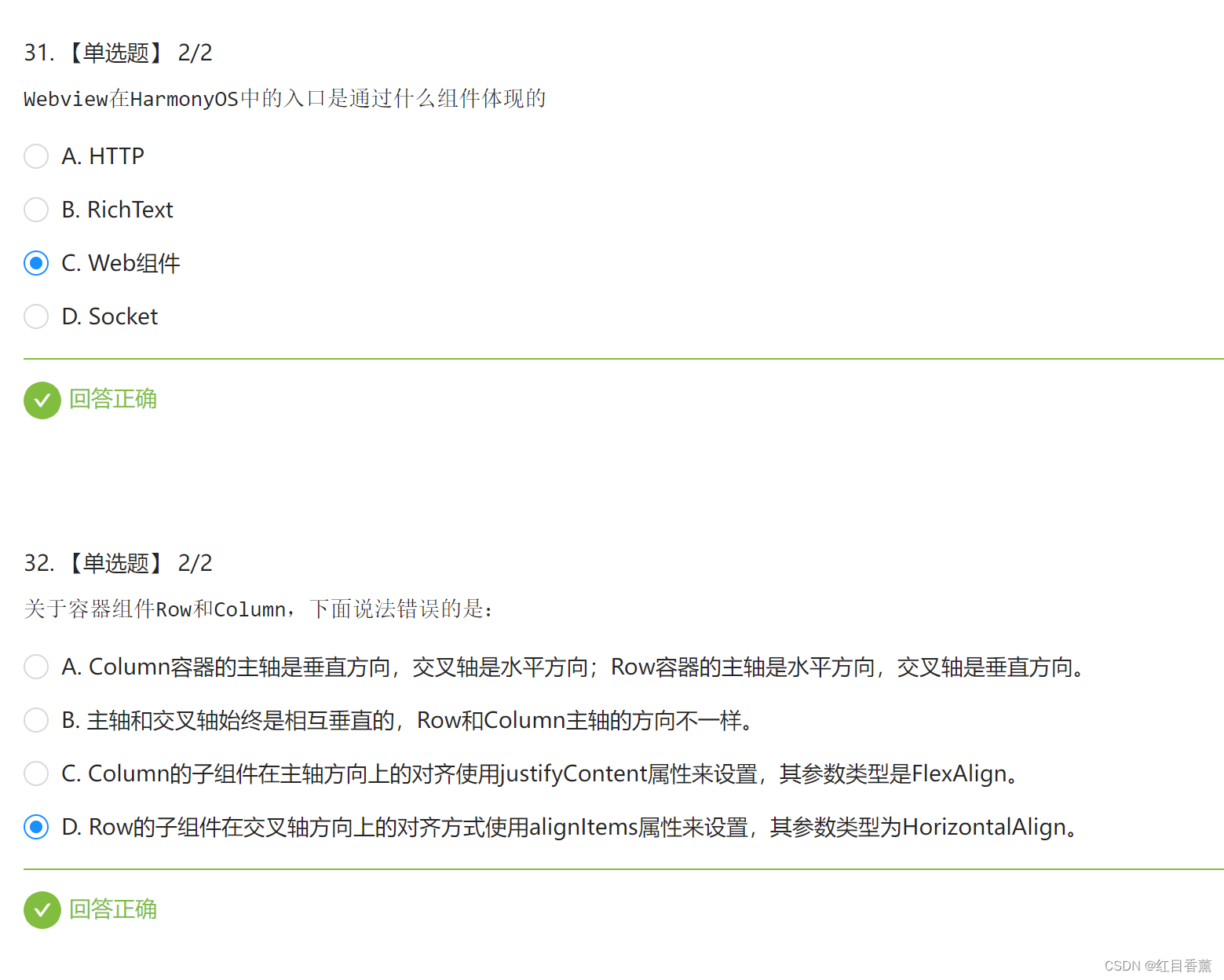 - Webview在HarmonyOS中的入口是通过什么组件体现的?( Web组件)