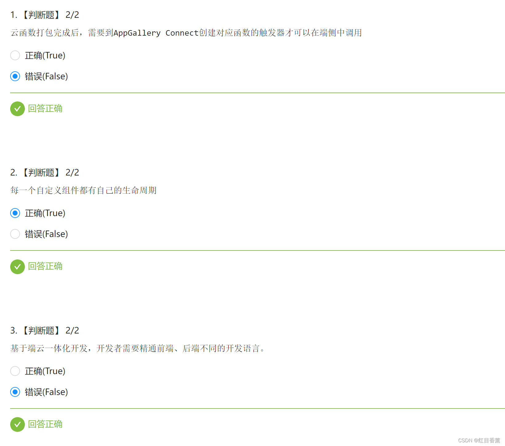- 基于端云一体化开发,开发者需要精通前端、后端不同的开发语言。 (错)