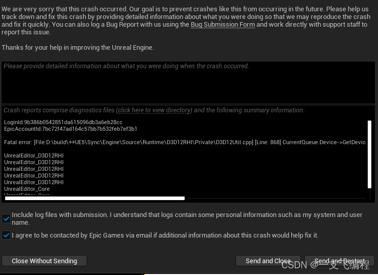 随后基本上就会出现这种虚幻引擎崩溃窗口