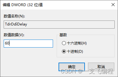 的 值(Value) 设置为 60 。点击 确定(OK) 完成。TdrDelay