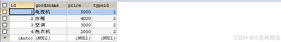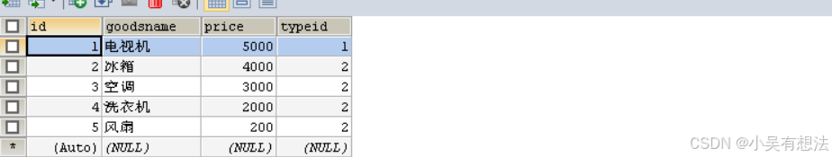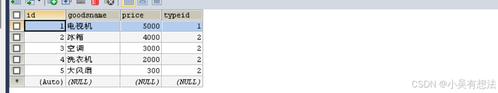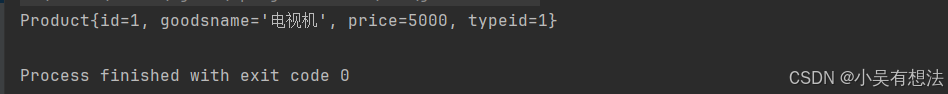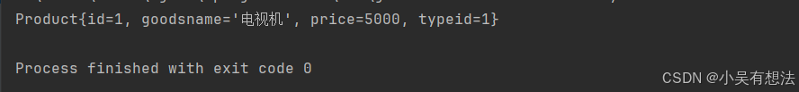 @Test public void testinsertProduct() { Product product2=new Product(); product2.setGoodsname("风扇"); product2.setPrice(200); product2.setTypeid(2); int i= productMapper.insertProduct(product2); System.out.println(i); session.commit(); }