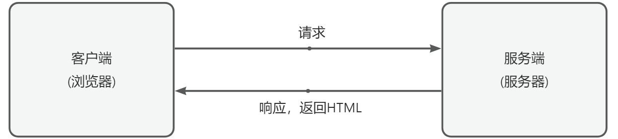 如下图所示,服务端渲染的所有渲染工作都在服务端完成,返回完整的HTML(包括模板和数据)。它的优势是显示快,也有利于SEO优化,但缺点也很明显,一点点局部改变,都需要重新请求并返回整个HTML,服务器压力大、占带宽。