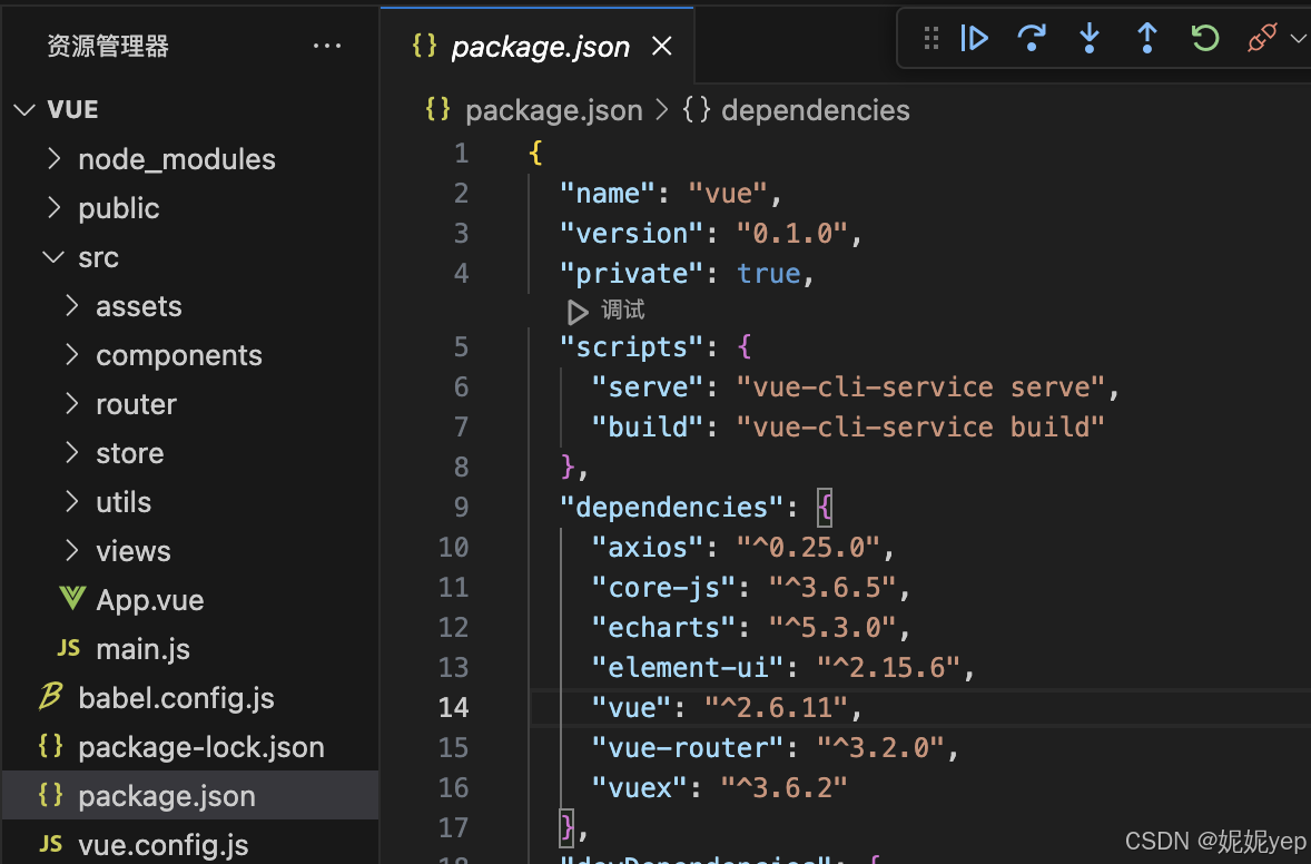 1、查看项目版本,在package.json中查看,在dependencies中的vue就是对应的版本