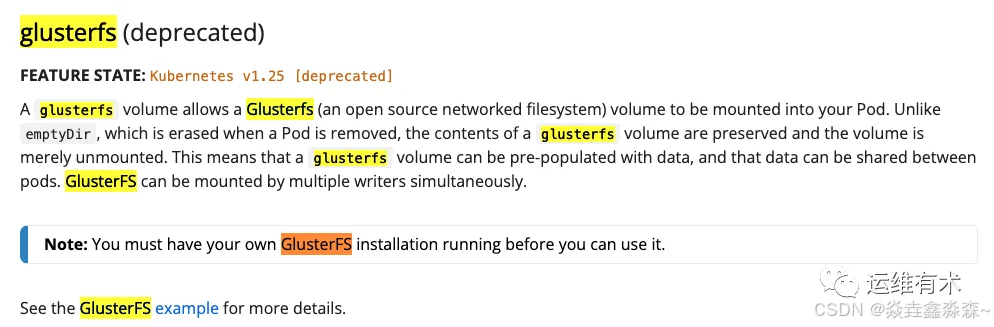 Kubernetes 从 v1.26 开始已经不再支持 GlusterFS