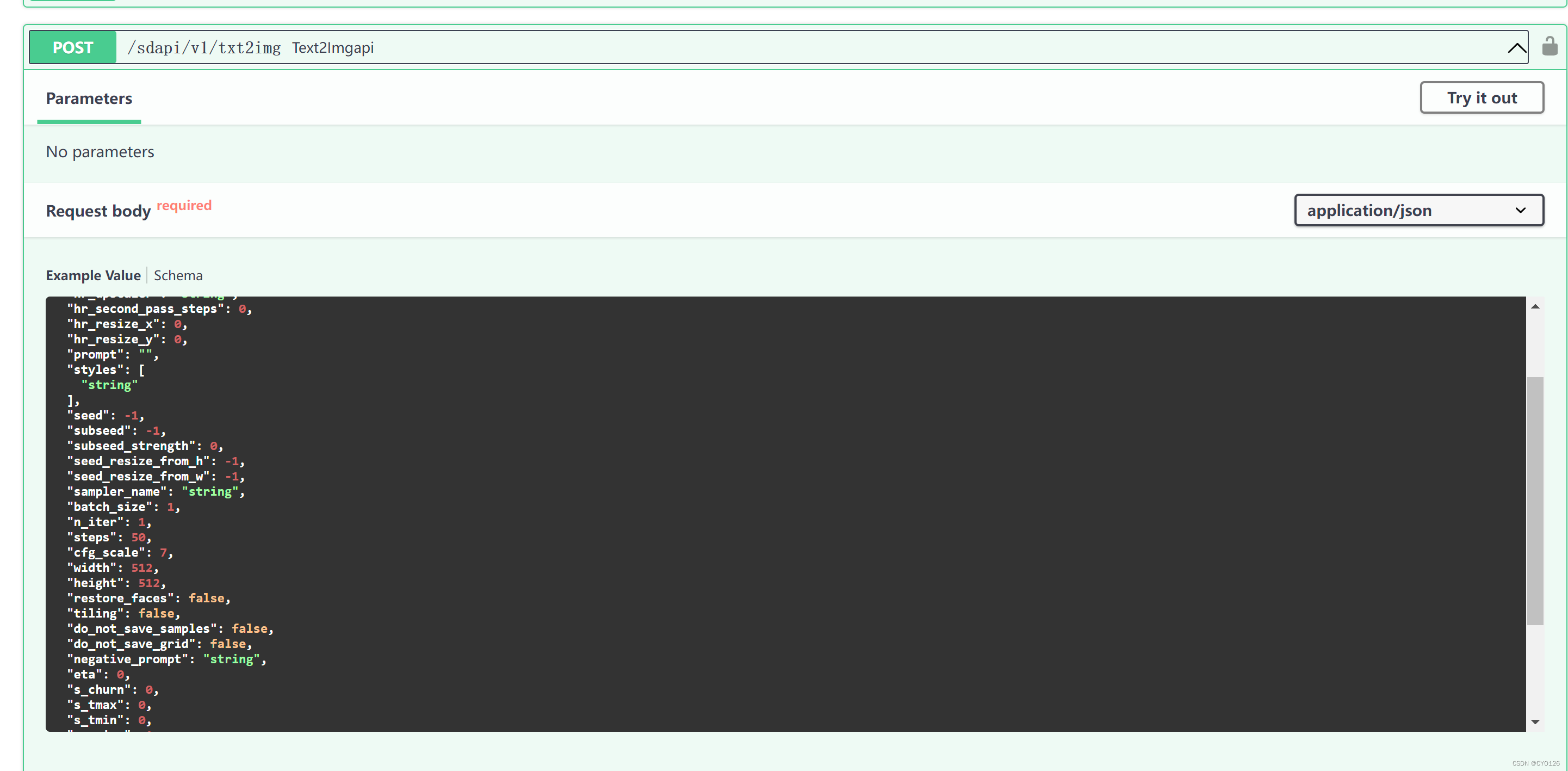 也有更多的可选请求,比较了解http请求和Json数据的老哥请自行访问 http://localhost:7860/docs/