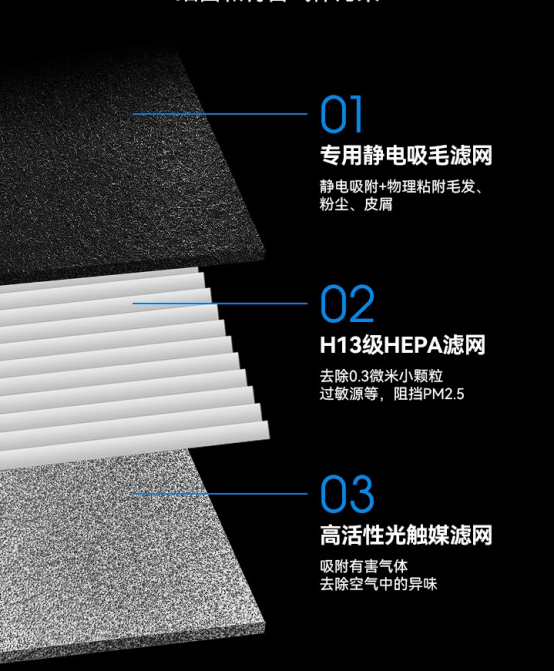 宠物空气净化器的滤网专为吸附和分解空气中的异味分子而设计。宠物的尿液、粪便和体味会留下难闻的气味,即使频繁清理猫砂盆也难以彻底去除。而这些滤网的强大吸附能力能够有效捕捉和分解这些异味分子,保持室内空气清新。