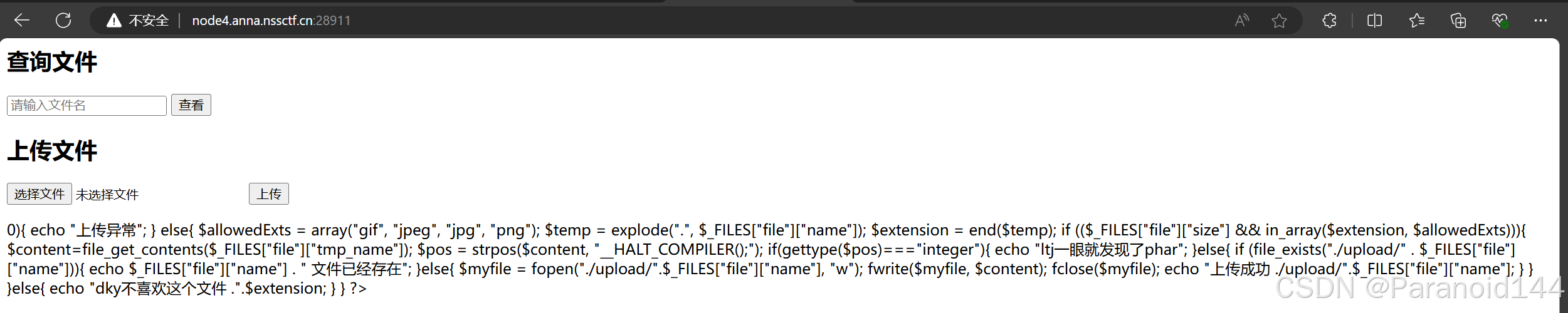 首先有一个查询文件的功能和一个文件读取的功能,一开始以为是文件上传的漏洞,后面发现不行,应该是网站在后端限制了文件上传的后缀,观察到这里有个文件查询的功能应该是文件读取,试一下直接读flag