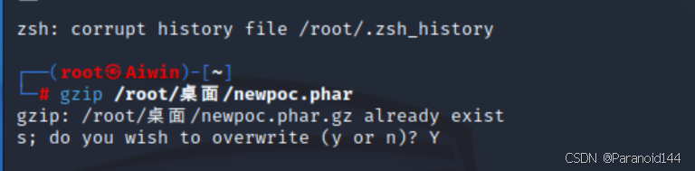 但是呢Phar伪协议确实执行了解压,但是eval()函数似乎没有执行的命令内容呢,不符合预期的解,再重新试了几遍,发现结果都一样。想了一想,签名生成应该不会有问题,Phar能够进行解压缩,说明重新签名应该也不会有问题,有没有可能是zip压缩的问题,换一种压缩试试,换成gzip