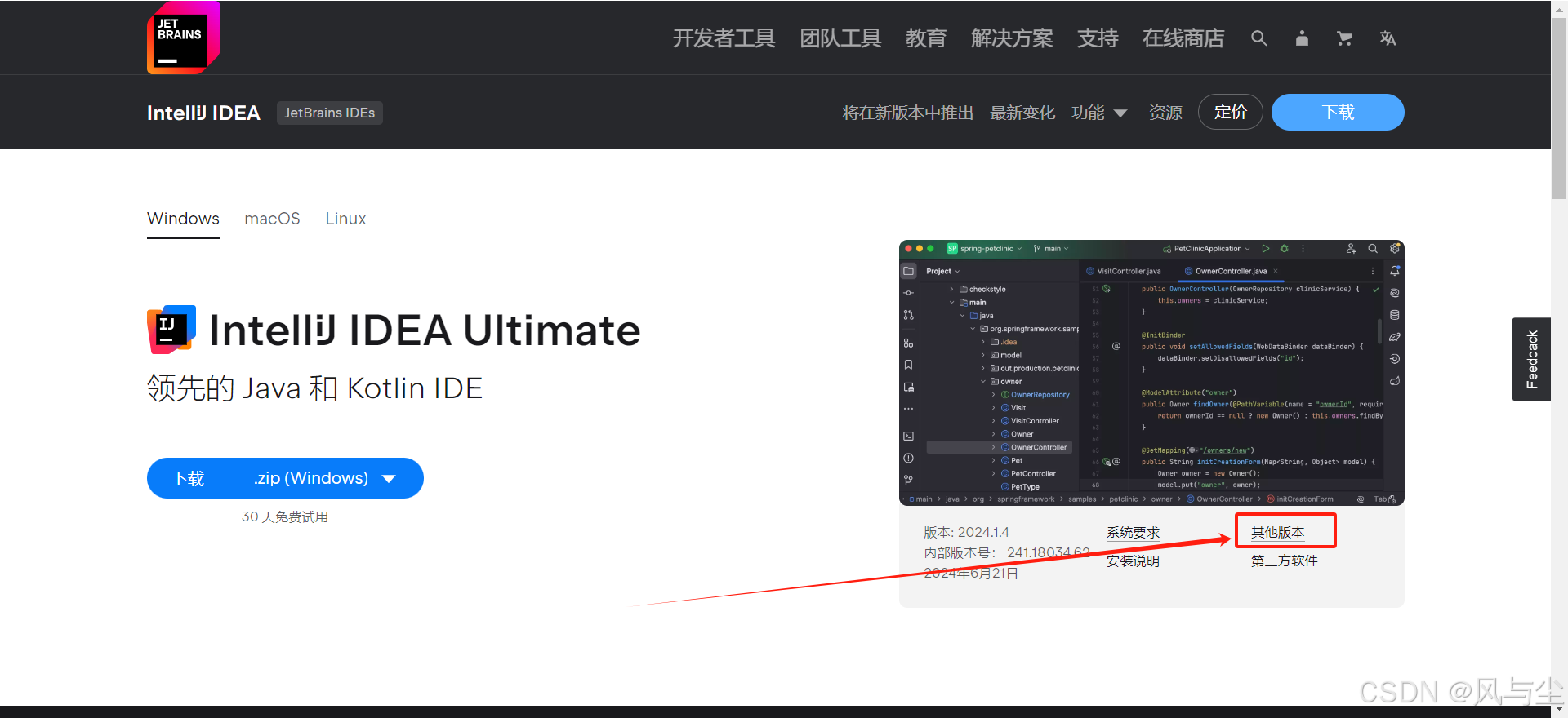 点击下载即可,此处为 IntelliJ IDEA Ultimate 2024.1.4