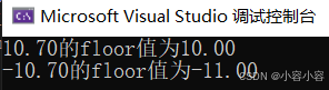 #include #include int main() { double num = 10.7; double floor_value = floor(num); printf("%.2f的floor值为%.2f\n", num, floor_value); num = -10.7; floor_value = floor(num); printf("%.2f的floor值为%.2f\n", num, floor_value); return 0; }