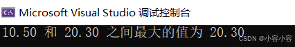 #include #include int main() { double num1 = 10.5; double num2 = 20.3; double max_value = fmax(num1, num2); printf(" %.2f 和 %.2f 之间最大的值为 %.2f\n", num1, num2, max_value); return 0; }