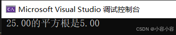 #include #include int main() { double num = 25.0; double result; // 计算 num 的平方根 result = sqrt(num); // 打印结果 printf(" %.2f的平方根是%.2f\n", num, result); return 0; }