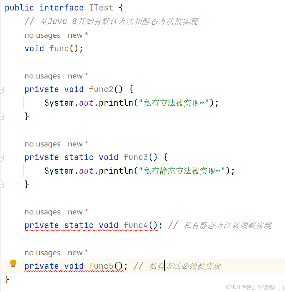 从Java 9 开始,进一步允许在接口中定义私有方法和私有静态方法的实现。
