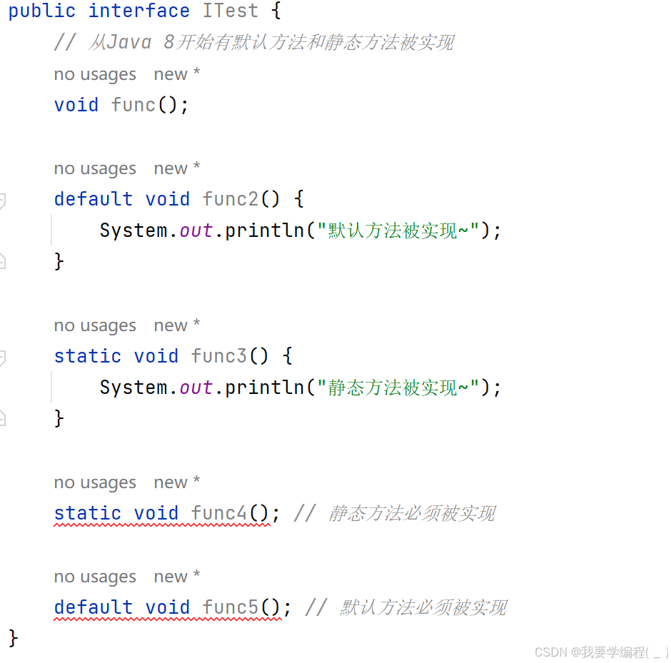Java 8以前的Java版本,所有的接口只能是抽象方法。但从Java 8开始接口中可以有默认方法