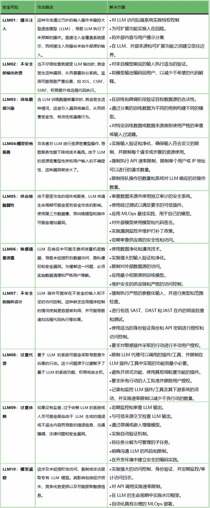 OWASP组织在2023年10月16日发布了LLM(大型语言模型)十大安全风险1.1版本,概述了针对LLM的潜在攻击方式、预防措施和攻击场景,可以帮助读者更好的理解LLM所面临的安全风险以及应对策略。