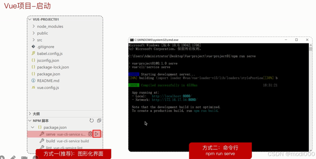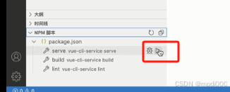 vscode中,展示npm脚本; 点击serve vue-cli-service serve