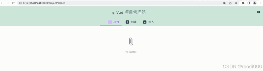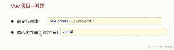有两种方式创建,一般采用第二种图形界面的方式创建,vue ui ,输入命令后呈现下图: