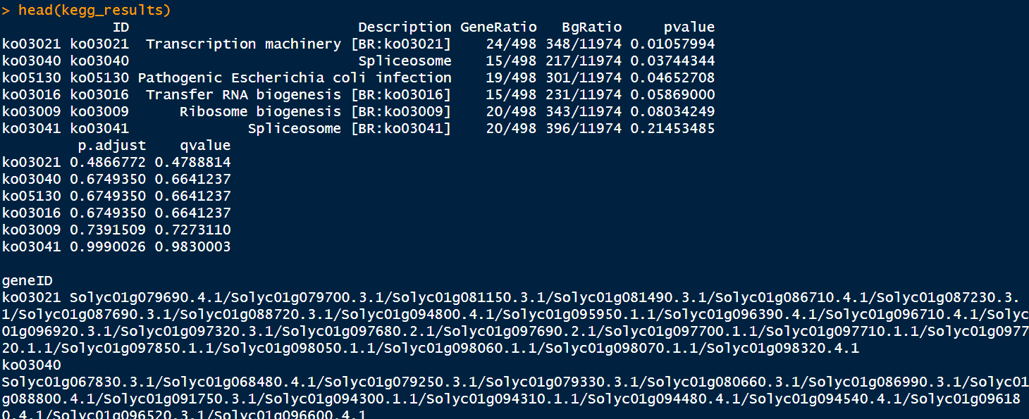 kegg_results <- as.data.frame(kegg) # head(kegg_results) ##'@导出结果 write.csv(kegg_results,"./KEGG_output.csv")