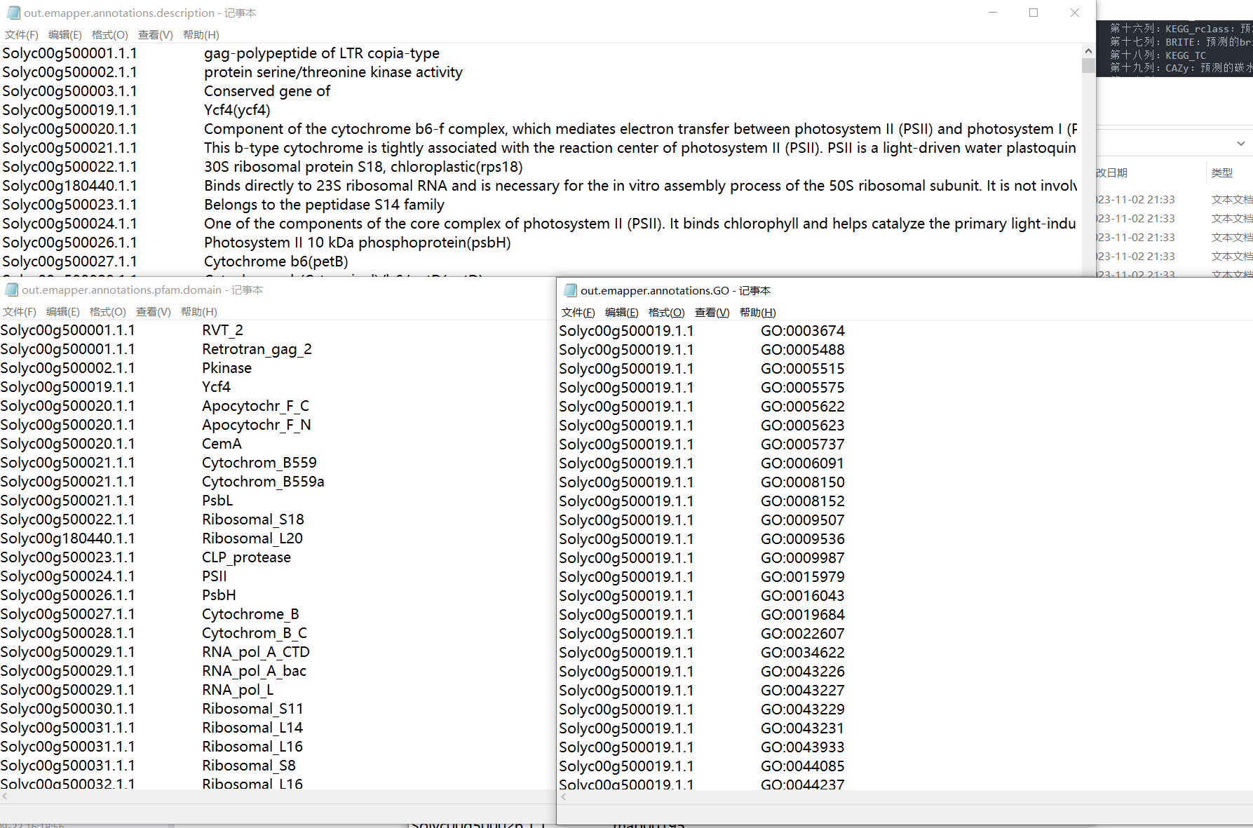 运行成功后,我们获得一下注释文件信息。如何操作,就成为后续分析重点。类似思路,可以依据模式植物GO背景基因集制作。