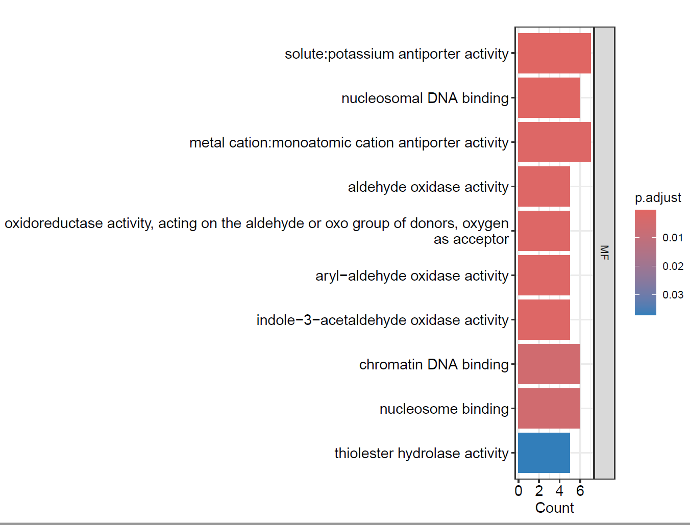 MF_ego <- enrichGO( gene = gene_list, keyType = "GID", OrgDb = org.Slycompersicum.eg.db, ont = "MF", ##'@GO的种类,BP,CC,MF pAdjustMethod = "BH", pvalueCutoff = 0.5 ##'@结合自己的需求进行调整 )