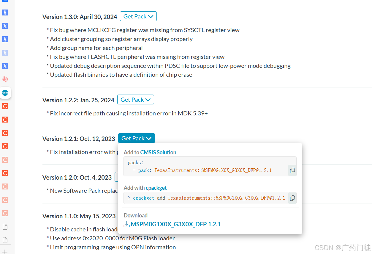 下载 1.1 使用条件 中的M0系列芯片包。
