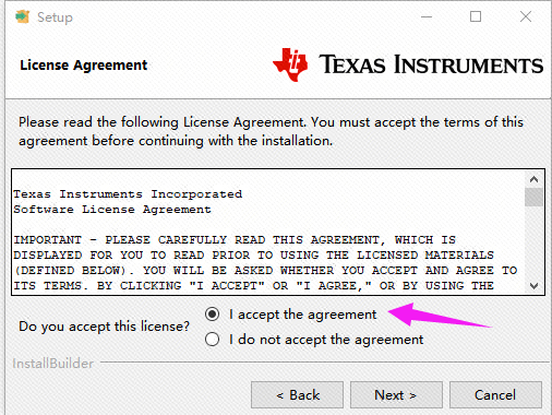 选择安装的位置。(我在D盘中新建了一个TI的文件夹,专门用于保存TI的文件)