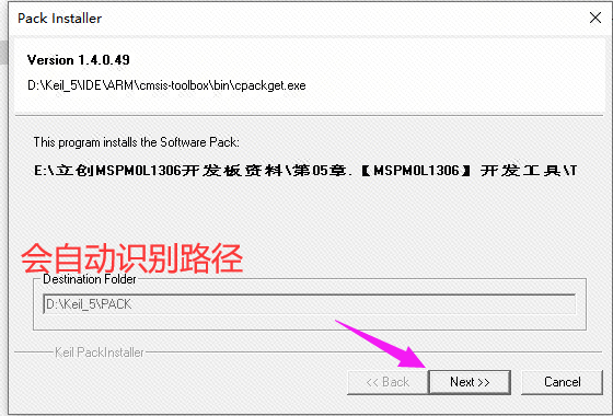 在识别出安装路径后,直接点击 Next 键进行下一步。